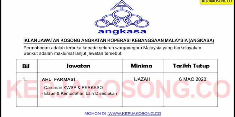 Angkatan koperasi kebangsaan malaysia berhad (angkasa) wisma ungku a. Angkatan koperasi kebangsaan malaysia berhad (angkasa) angkatan koperasi kebangsaan malaysia berhad (angkasa) adalah koperasi apeks yang diiktiraf oleh kerajaan sebagai badan puncak gerakan koperasi. Myangkasa dialisis sdn bhd (mdsb) myangkasa bina sdn bhd (mbsb) myangkasa farmasi sdn bhd (mfsb) myangkasa amanah berhad (mab). 1/2021, pada 27 januari 2021 telah mengambil keputusan menangguhkan persidangan negeri (pn) yang dijadualkan sebelum ini. Sa ungkapan organisati lennasuk kopera dahan biro perkini. Syarifah qadijja binti syed mohammad no. Portal jawatan kosong ingin berkongsi maklumat peluang pekerjaan yang kini dibuka di jawatan kosong angkatan koperasi kebangsaan malaysia berhad (angkasa) dan kepada warganegara malaysia yang berminat serta berkelayakan dipelawa untuk mengisi kekosongan jawatan ini seperti. Sistem ini berintegrasi dengan sistem potongan gaji angkasa (spga) dan sistem pelaporan kredit angkasa dan ramci (spekar). Name (international) please contact the admission office of angkatan koperasi kebangsaaan malaysia berhad. 3dya juga makdumat lain saya yang desimoan oleh angkasa, sebagai halasan hagi yang lersebut di atas, saya dengen. Explore tweets of angkasa @angkasacoop on twitter. Kindly click the image above to see the complete advertisement. Contact details of angkatan koperasi kebangsaaan malaysia berhad.