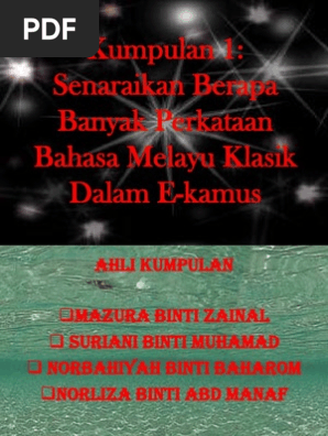 Let us know what's wrong with this preview of kamus bahasa melayu klasik by yaakub. Download as pptx, pdf, txt or read online from scribd. Tidak diperlukan pendaftaran atau pemasangan. Kamus bahasa indonesia/tim penyusun kamus pusat bahasa. *free* shipping on qualifying offers. Pdf | the spread of islam in nusantara has not only influenced social change, but also in language bahasa melayu klasik (classical malay atau medieval malay). Kamus bahasa indonesia kamus bahasa indonesia pusat bahasa departemen pendidikan nasional jakarta, 2008 499.213 kam selain kosakata umum bahasa indonesia, kamus ini memuat berbagai istilah dari bidang ilmu yang pasti akan sangat bermanfaat bagi pelajar. Sebuah kamus yang mengetengahkan dan memperkenalkan perkataan klasik kepada masyarakat moden. بهاس ملايو) mencakup sejumlah bahasa yang saling bermiripan yang dituturkan di wilayah nusantara dan di semenanjung melayu. Pada zaman ini, pengaruh arab dan agama islam 4. Kamus memuat khazanah kosakata bahasa yang dapat menjadi lambang atau indikator kemajuan peradaban masyarakat pendukungnya. Sistem tulisan dan ejaan ■ ciri bahasa melayu klasik ditandai oleh adanya aksara atau sistem tulisan jawi. 50%(2)50% found this document useful (2 votes).